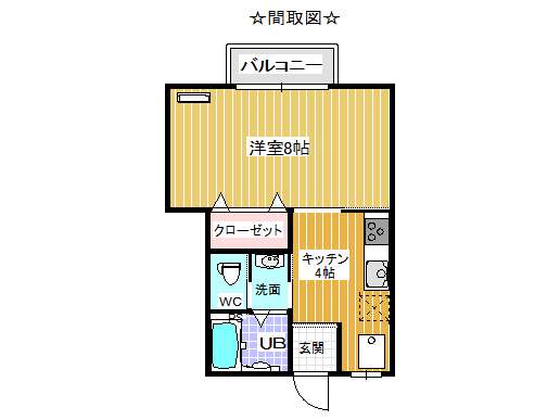 | 詳細間取 | 1K (洋8帖×1、キッチン4帖) | ||